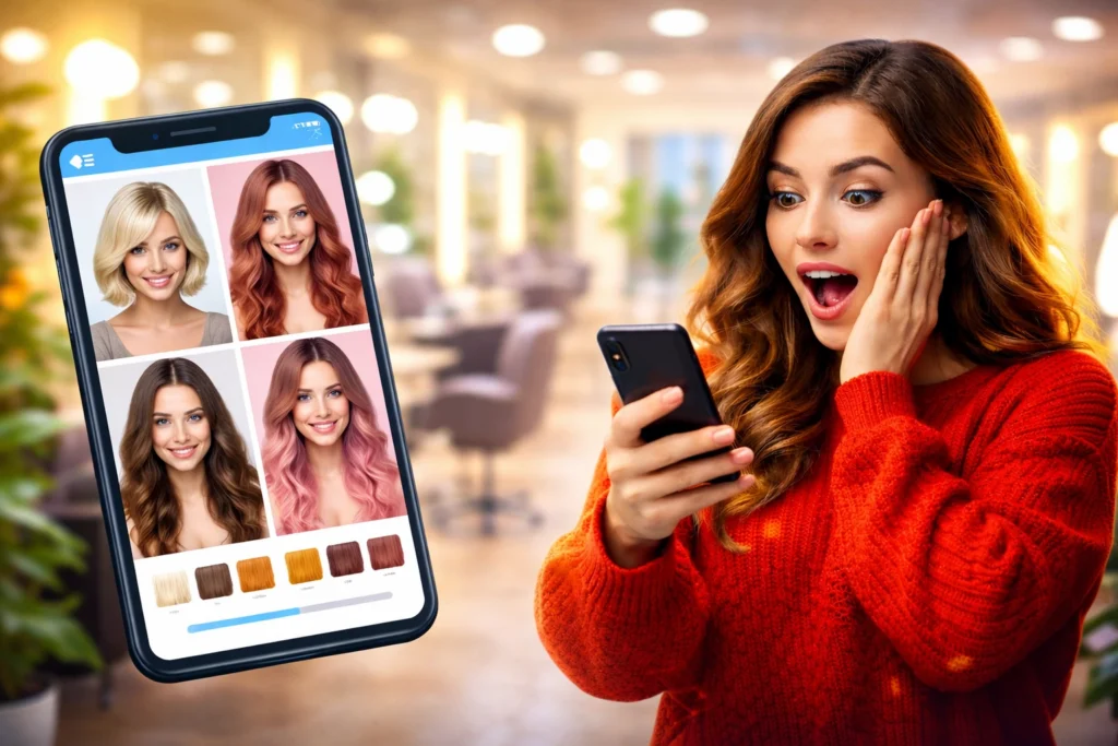 A boa notícia é que isso ficou no passado. Hoje, com um App para testar cabelos, você consegue ver exatamente como ficaria com outro corte, outra cor ou até um estilo totalmente diferente — tudo direto no celular 📱