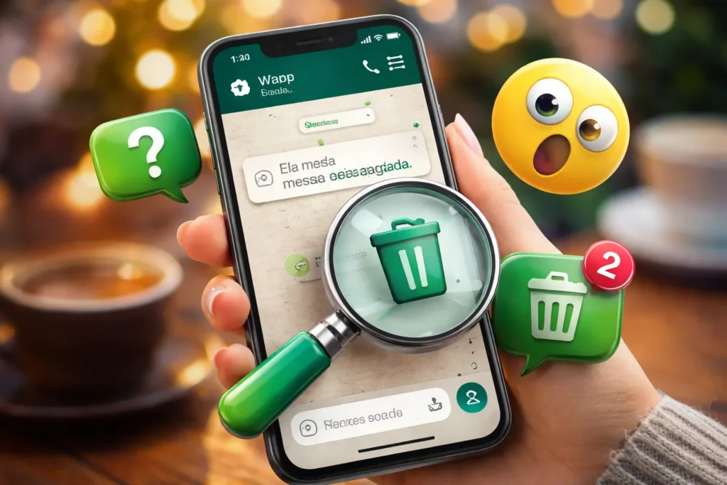 Já aconteceu com você: chega uma mensagem no WhatsApp, você vê a notificação… e quando vai abrir, aparece aquele aviso misterioso: “Esta mensagem foi apagada.” 😳