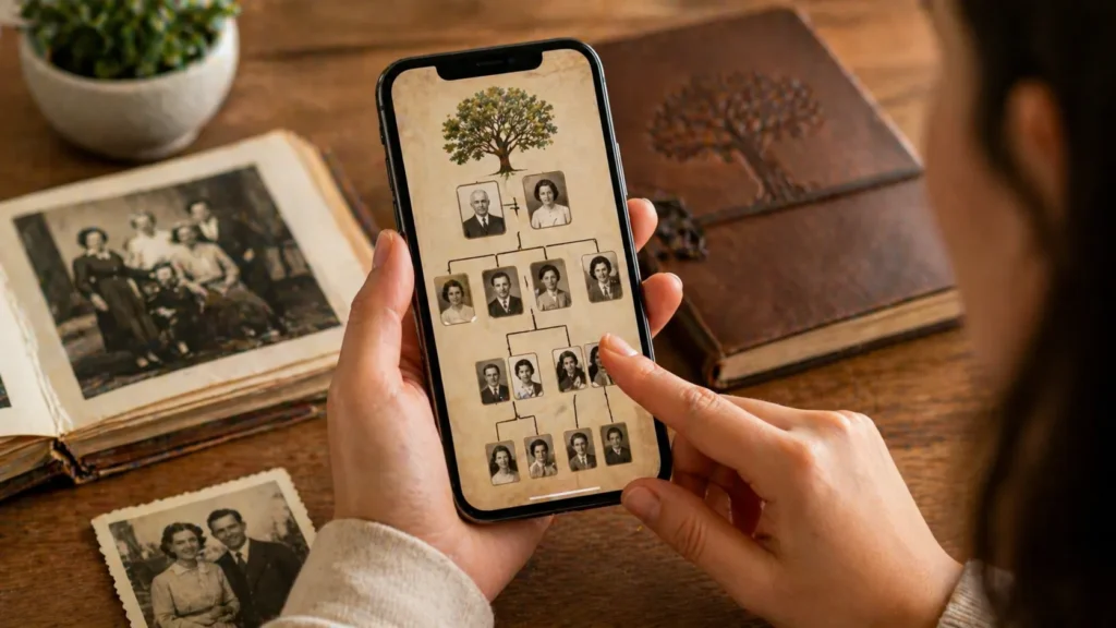 Enquanto isso, a boa notícia é que hoje você não precisa mais depender apenas de documentos antigos ou de longas pesquisas. Com a ajuda da tecnologia, ficou muito mais fácil explorar a história da sua árvore genealógica direto do celular 📲✨